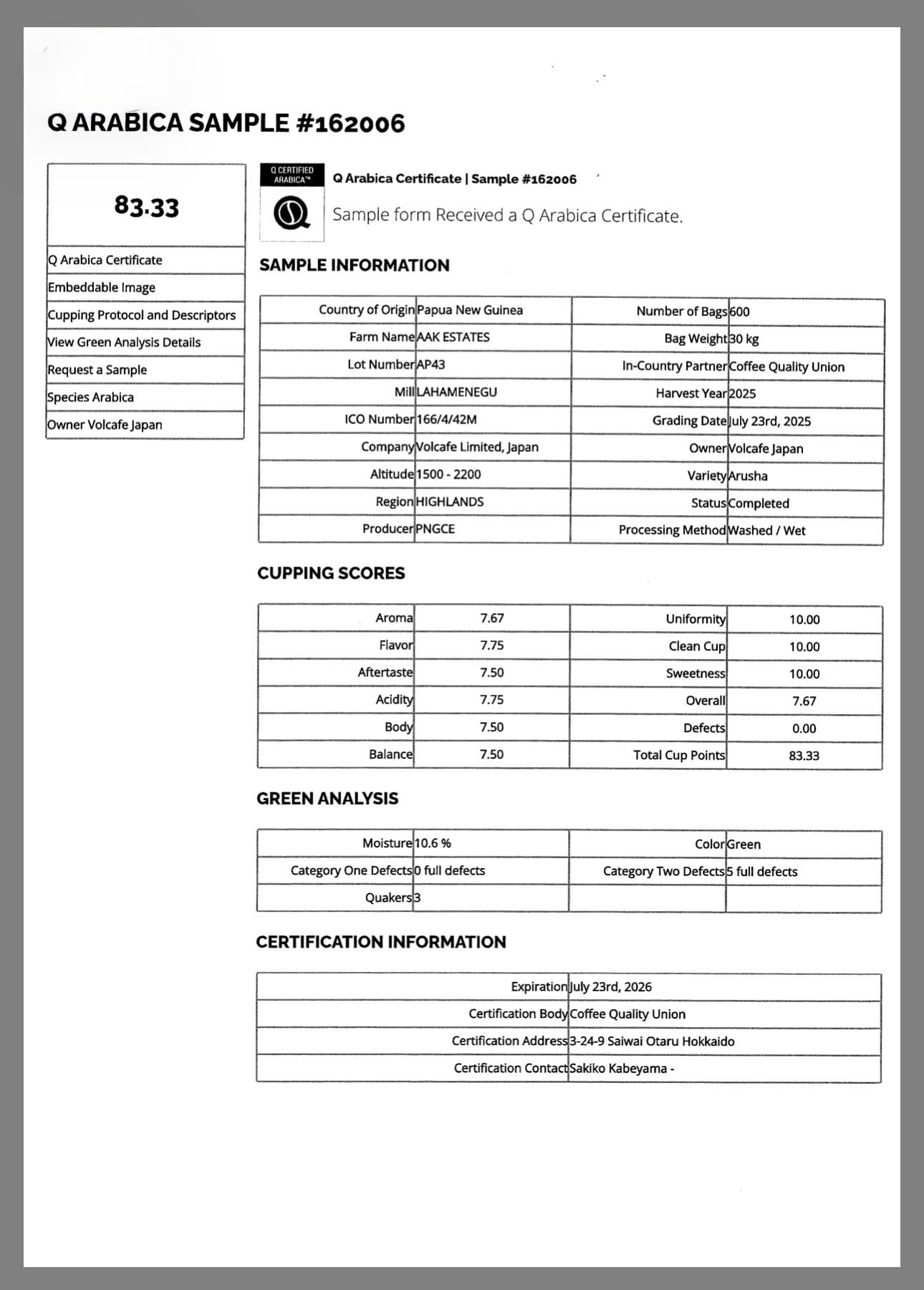 コーヒー品質協会(CQI)が国際規格に基づき認定した